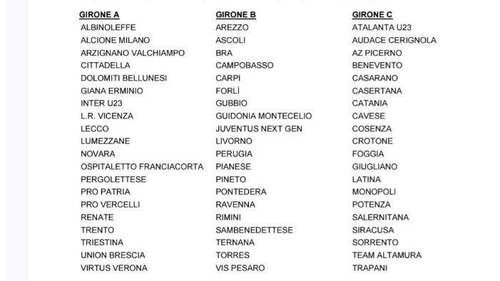 Il Consiglio Direttivo di Lega, nella riunione tenutasi oggi, ha deliberato la composizione dei gironi del 'Campionato Serie C Sky Wifi' per la stagione sportiva 2025/2026. Nella sua prima storica, partecipazione, la neonata Inter U23 di Stefano Vecchi è stata inserita nel girone A con Albinoleffe, Alcione, Arzignano, Cittadella, Dolomiti Bellunesi, Giana Erminio, Vicenza, Lecco, Lumezzane, Novara, Ospitaletto Franciacorta, Pergolettese, Pro Patria, Pro Vercelli, Renate, Trento, Triestina, Union Brescia e Virtus Verona.