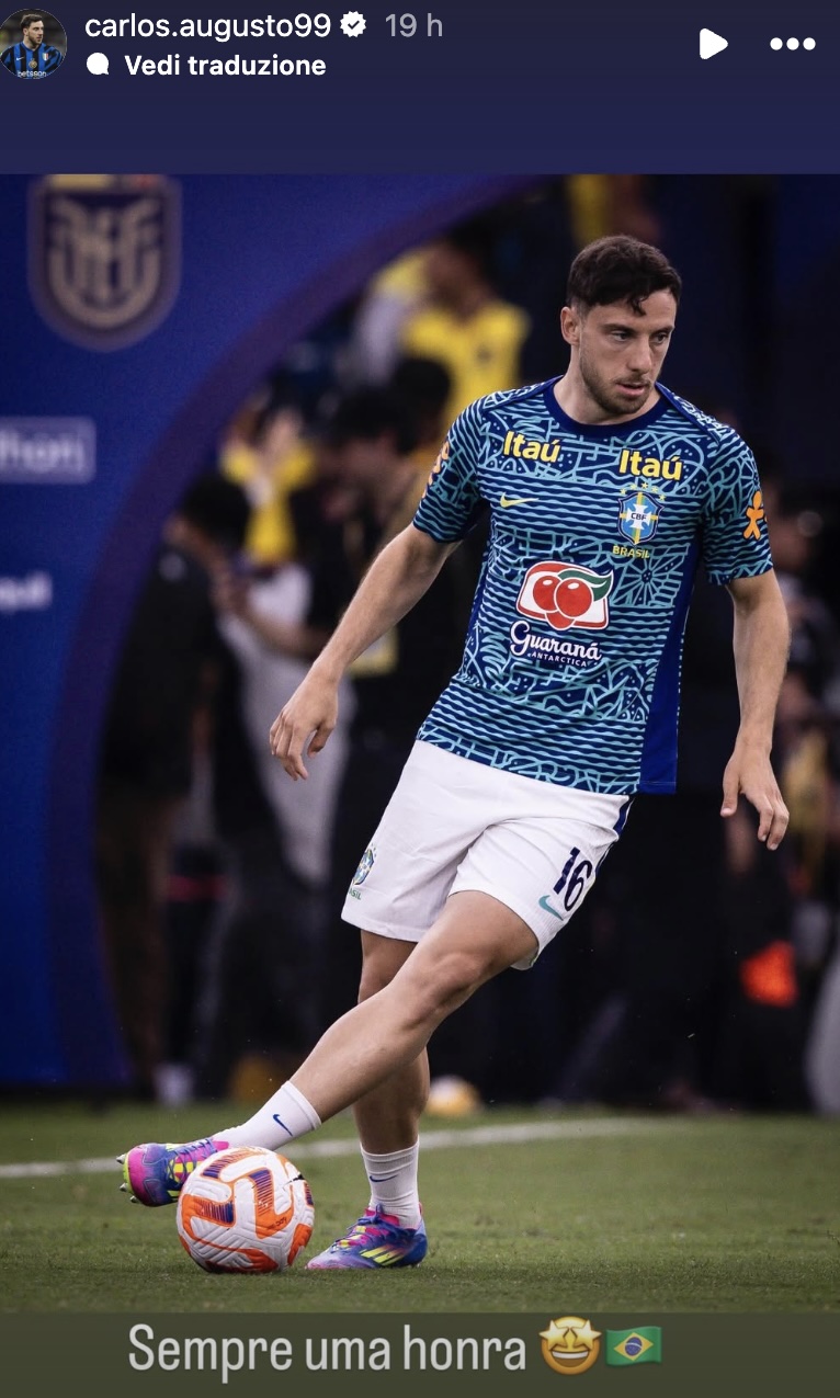 Carlos Augusto ha accolto con grande piacere la chiamata di Carlo Ancelotti, ct del Brasile, che lo ha inserito nella lista dei convocati per le amichevoli in terra asiatica contro Corea del Sud e Giappone, in programma rispettivamente il 10 e 14 ottobre. "Sempre un onore", ha scritto sul suo profilo Instagram il laterale dell'Inter che, per la seconda volta su tre, farà parte dei giocatori verdeoro selezionati dal tecnico italiano.