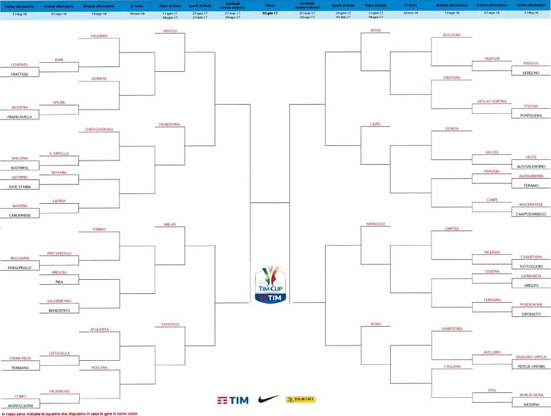 Coppa Italia 2016-2017, il tabellone dell'Inter