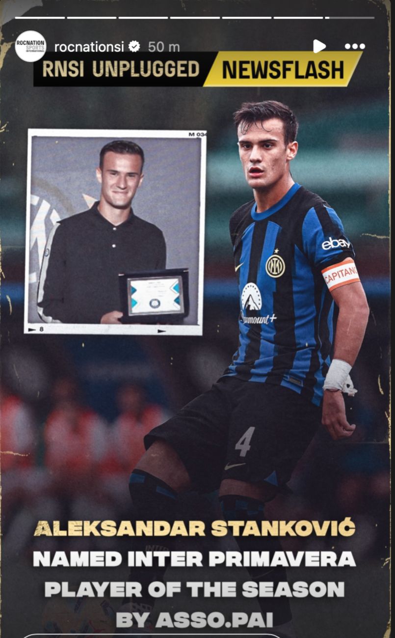 Andata in scena presso la Sala Executive di San Siro una piccola celebrazione per i vent'anni dell'associazione Asso.Pai, l'associazione dei Piccoli Azionisti Inter; durante l'incontro il presidente dell'associazione Mario Vigo ha premiato Aleksandar Stankovic come miglior atleta della Primavera. Un riconoscimento che l'agenzia di procura del ragazzo, la Roc Nation Sports ha omaggiato tramite i social.