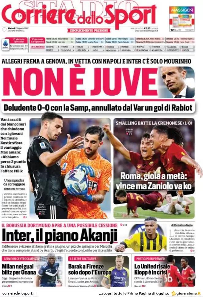 “Inter, il piano Akanji”. Si apre così l’edizione del Corriere dello Sport in edicola domani. “Il Borussia Dortmund apre a una possibile cessione. Il difensore svizzero si libera gratis a giugno, un piccolo spiraglio per Marotta che tiene sempre in stand-by Acerbi: c’è già l’accordo con Lotito per il prestito”.