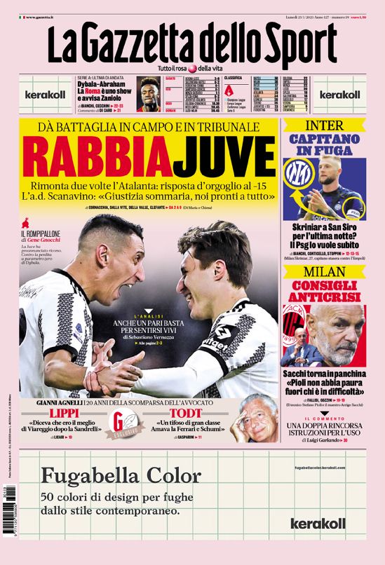 “Inter, capitano in fuga”. Si apre così La Gazzetta dello Sport in edicola domani. “Skirniar a San Siro per l’ultima notte? Il PSG lo vuole subito”.