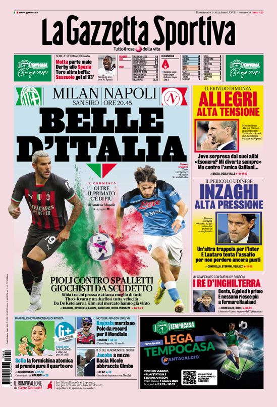 “Inzaghi, alta pressione”. Si apre così La Gazzetta dello Sport in edicola domani: “Il pericolo Udinese. Un’altra trappola per l’Inter. E Lautaro tenta l’assalto per non perdere ancora punti”.