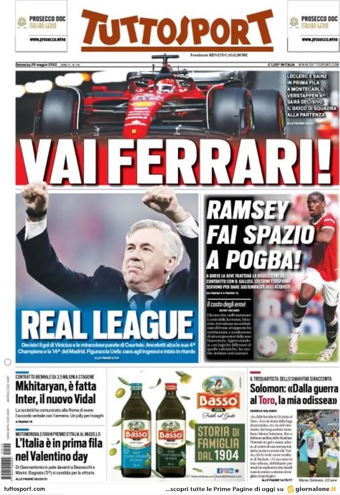Spazio anche al mercato dell’Inter sulla prima pagina di Tuttosport: “Mkhitaryan, è fatta. Inter, il nuovo Vidal”. Si legge. “La società ha comunicato alla Roma di avere l’accordo verbale con l’armeno. Un jolly per Inzaghi”.